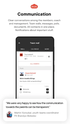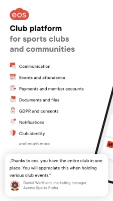 With the EOS platform, you can solve all your club communication, paperwork, and website in one go. The mobile app then makes life easier for the members themselves, their parents and coaches. Say no to chaos in messengers. Communicate with your teams easily.