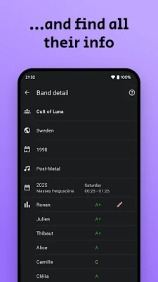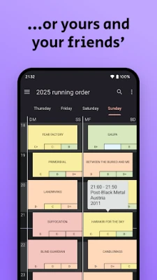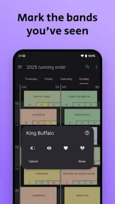 Rate the bands you want to see to get a custom running order, and share those ratings with the friends who'll be with you.