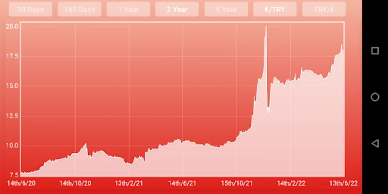 Don't need internet connection to work, can work offline. The exchange rate is automatically updated when internet connection is available. Contains chart with the latest rates: 30 days, 6 months and 12 months.